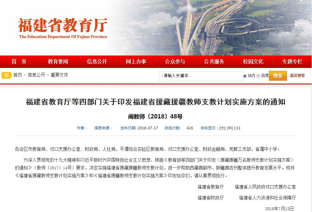 【導讀】7月13日,福建省教育廳公布,福建省教育廳等四部門關于印發福建省援藏援疆教師支教計劃實施方案的通知,以下是通知內容: