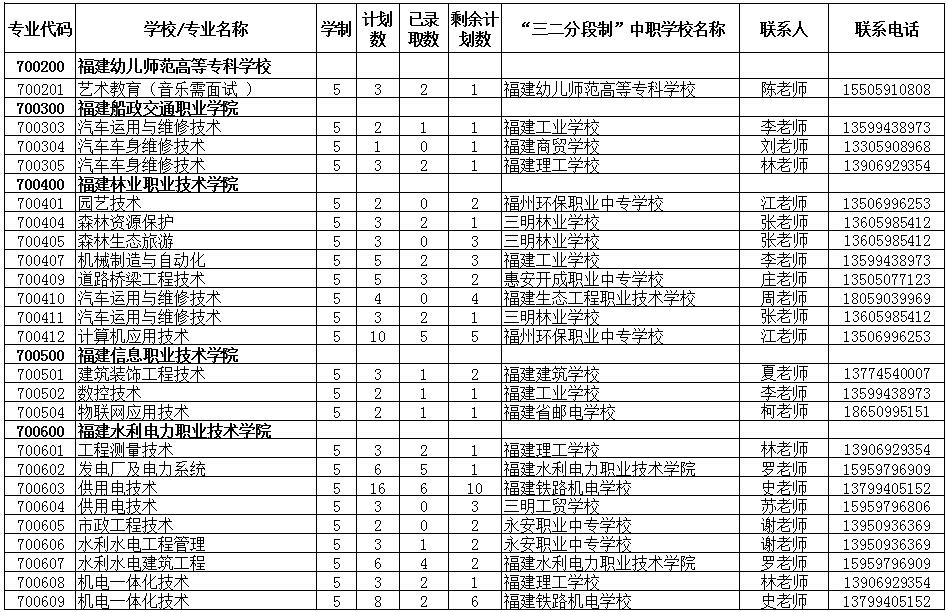 2.報名辦法:上述對象根據五年制高職剩余招生計劃,直接與相關學校聯系招生事宜(具體聯系方式詳見附表)。