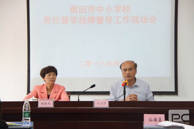 4月26日,莆田市中小學校責任督學掛牌督導工作現場會在仙游縣城東中心小學召開。市教育局局長、市政府總督學卓金賢,市政府教育督導室正處級督學陳秋英,仙游縣政府副縣長吳蘭芳,各縣區(管委會)教育局(事務局)分管副局長、督導室主任,市教育督導室干部,各縣區督學責任區組長等90余人參加會議。